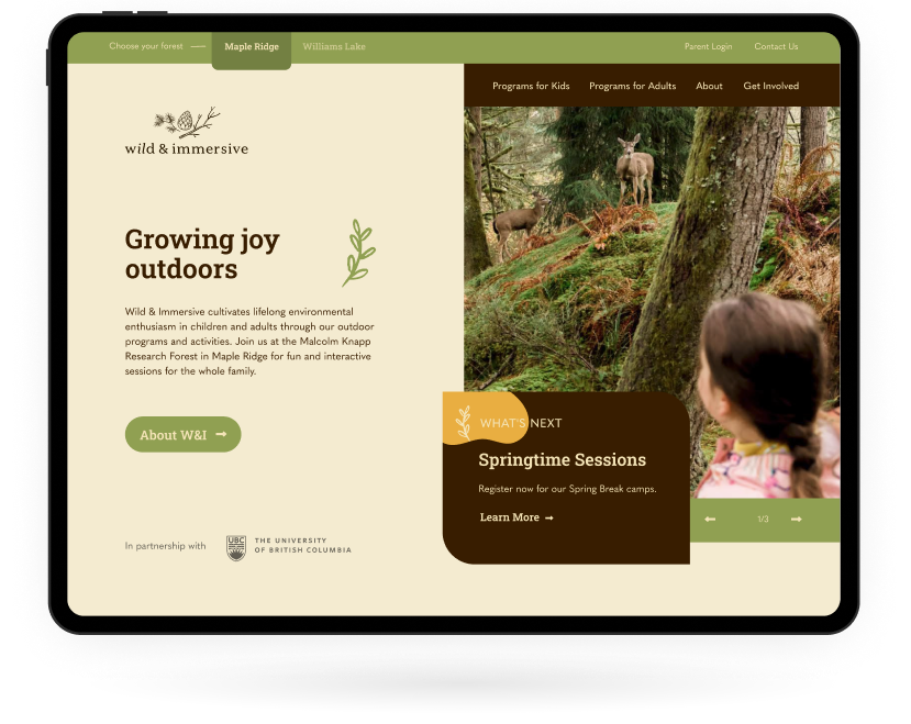We refined the brand to capture a modern approach to learning and team-building before rethinking the site’s architecture. To communicate the diverse programs and their benefits, we developed an intuitive navigation system that clearly separates kid vs adult programming and highlights the distinct features of each forest.