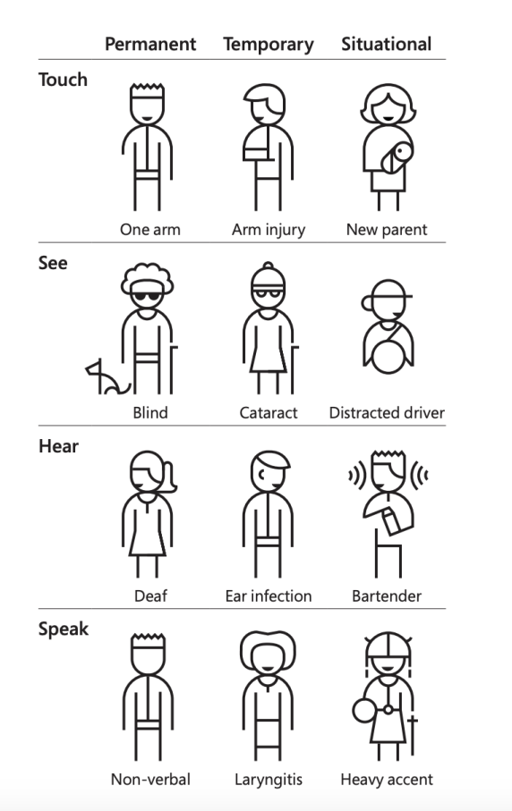 Usually, when we think of accessibility, we think of a certain type of permanent disability, such as deafness or blindness. But there are other kinds of disabilities we need to take into account.