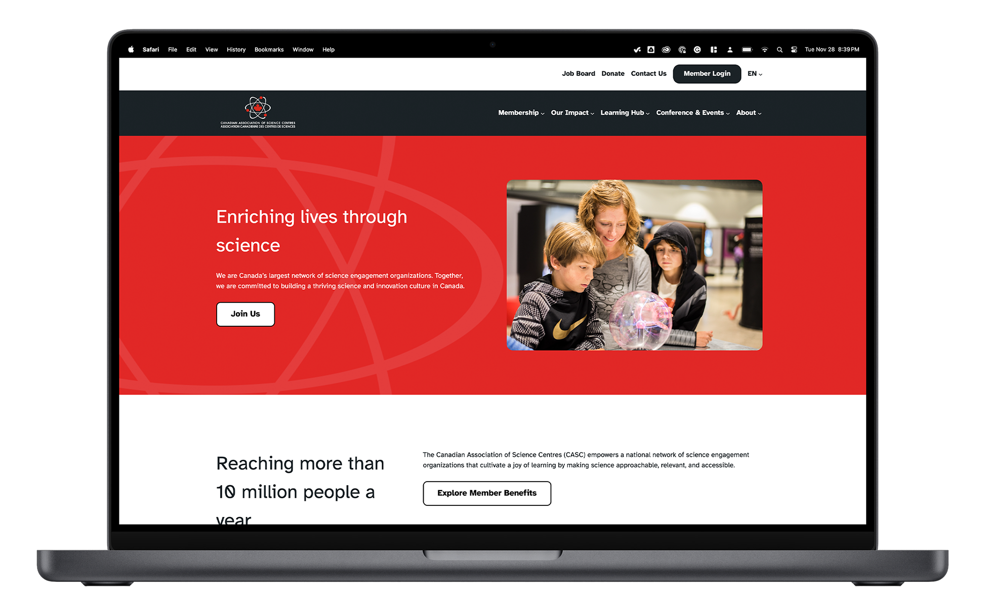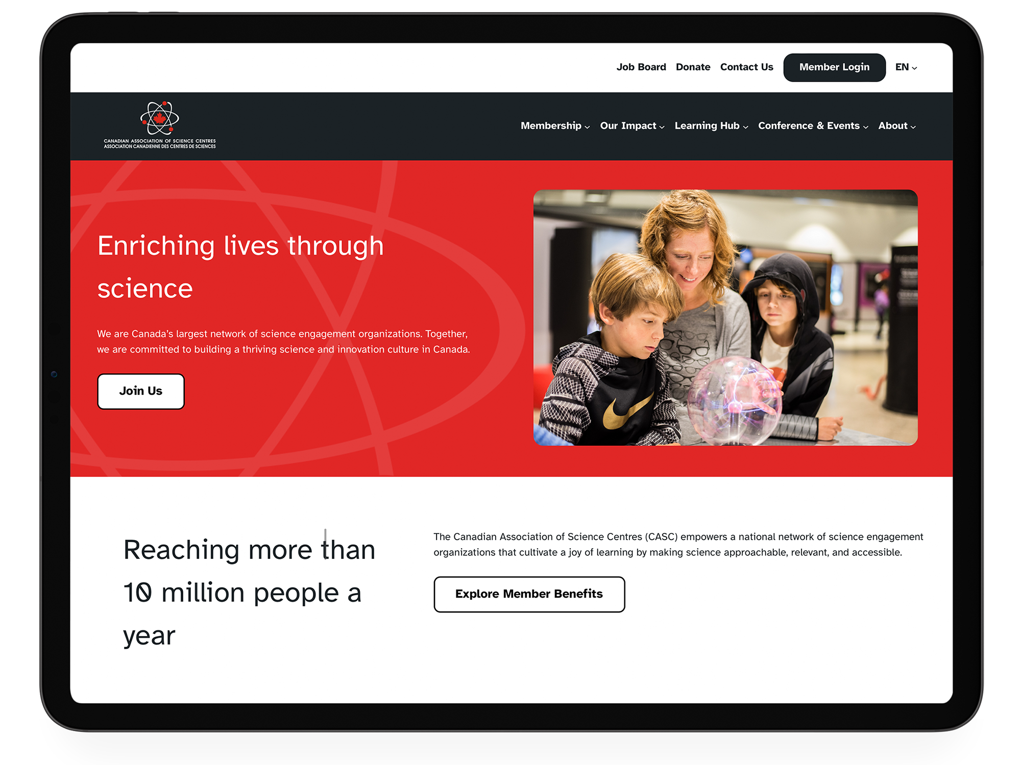 The new site brings CASC’s excitement and curiosity of science into a more modern digital space with a new sleek look and feel without losing its trustworthiness or inclusive nature. Membership benefits, resources, advocacy and events are now featured prominently in the experience so users can easily find them. The site now lends a strong voice and resources to those that are interacting with Canada’s thriving science and innovation culture on a daily basis.