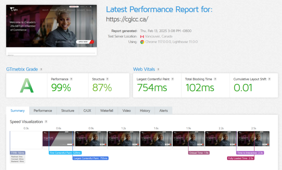 The CGLCC platform has experienced significant performance improvements to core web vitals as direct result of the rebuild.