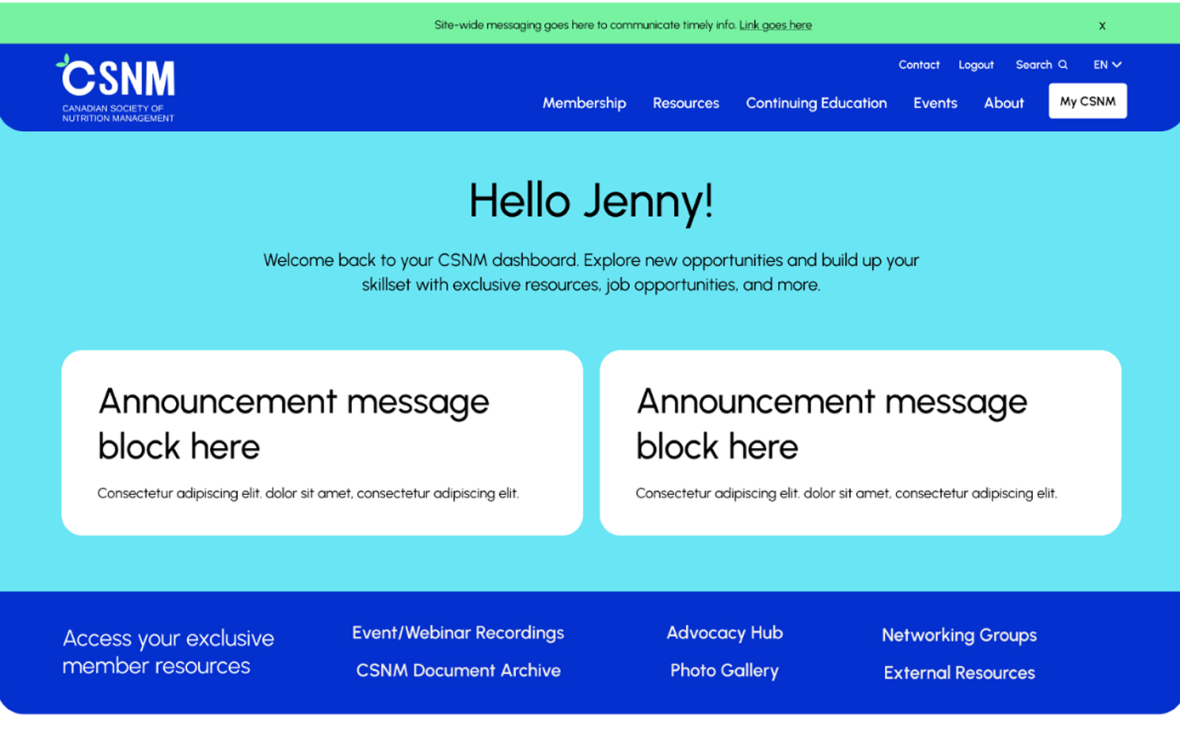 The website is configured to create a clear distinction between Members-only pages and pages that are available to all. For potential members who are in an exploratory phase, the site offers public-facing and “teaser” content to showcase why becoming a CSNM member is worthwhile. Once logged-in, members have a personalized dashboard that provides them with timely updates and directs them to member exclusives.