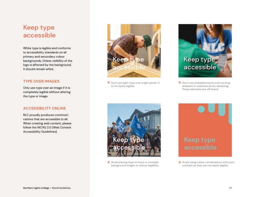 We updated NLC’s branding so it would stand out from other colleges with a professional yet modern and refreshed look. This included an expanded and vibrant palette, rounded images reflecting NLC’s symbol mark, and mixing in natural images along with local student, school, and location imagery for added authenticity and a unique feel.
